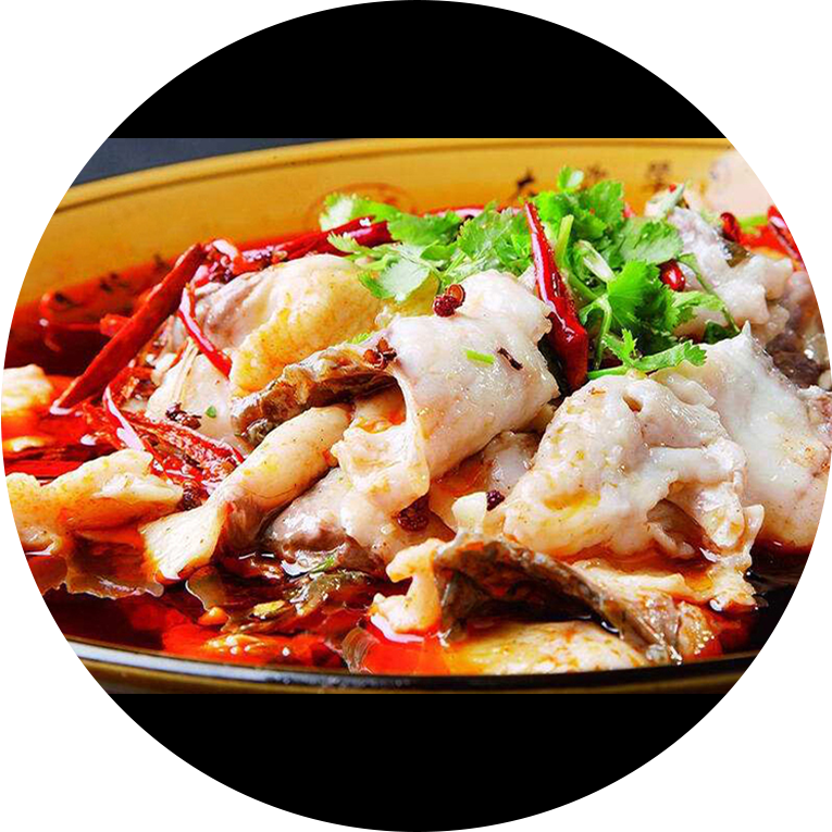 1、將整條魚2斤宰殺后洗凈,剔魚骨和刺,切肉片待用,鍋內加植物油100克燒至7成熱時,加入水煮魚調料180克炒制;